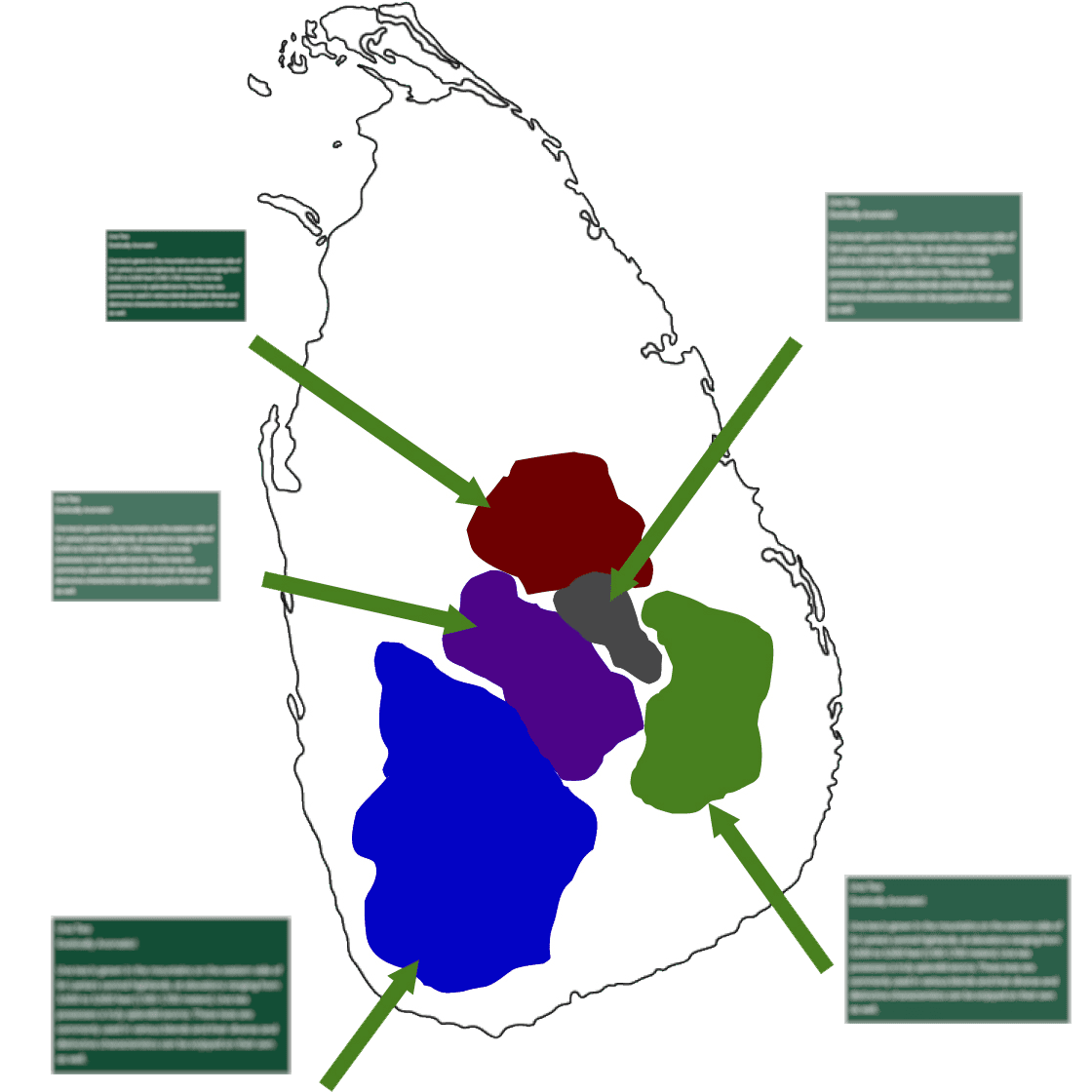 スリランカの多様な気候と地形が、異なる5つの茶栽培区域に分類される。